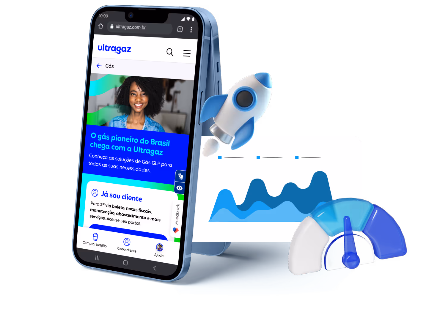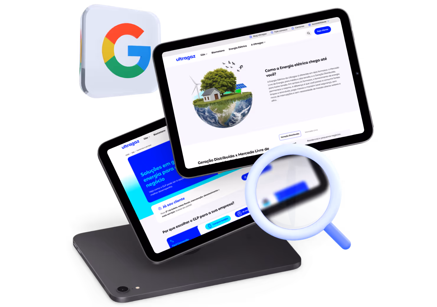 Além do visual, trabalhamos intensamente o conteúdo do site, sempre com foco em SEO. O resultado foi rápido e concreto: Ultragaz avançou 13% no ranqueamento do Google em pouco tempo, fortalecendo presença digital e atraindo ainda mais público qualificado.